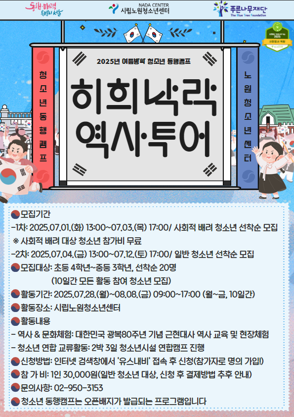 2025년 여름방학 청소년 동행캠프 '히희낙락 역사투어' 프로그램 모집 안내