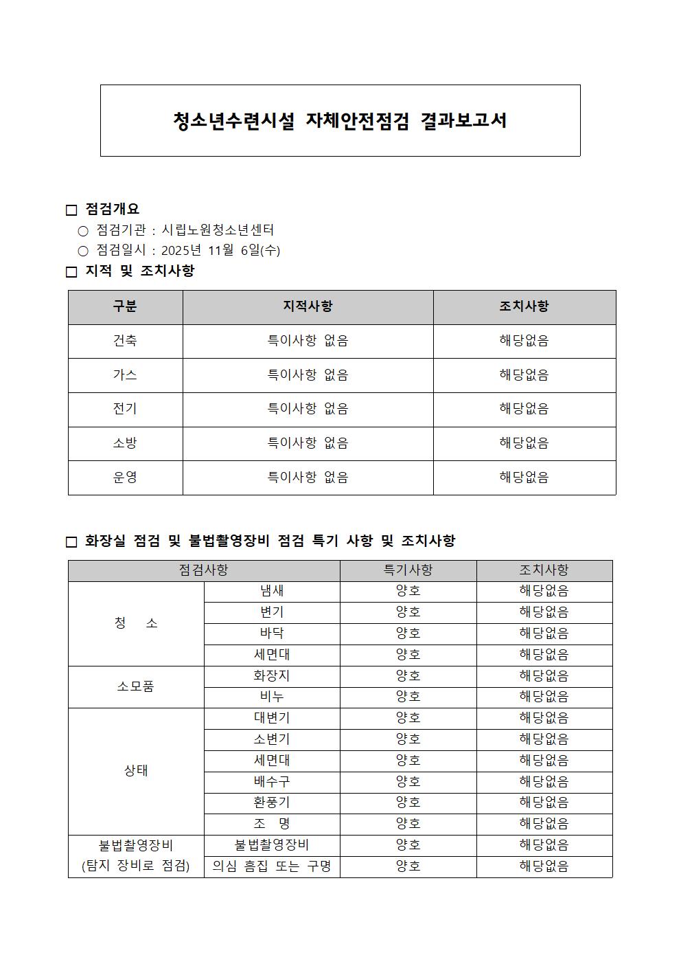 2025년 11월 시립노원청소년센터 안전점검표 공지