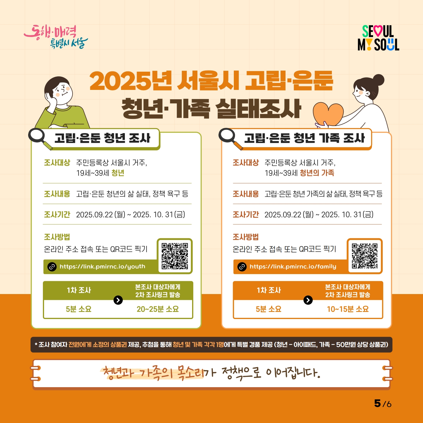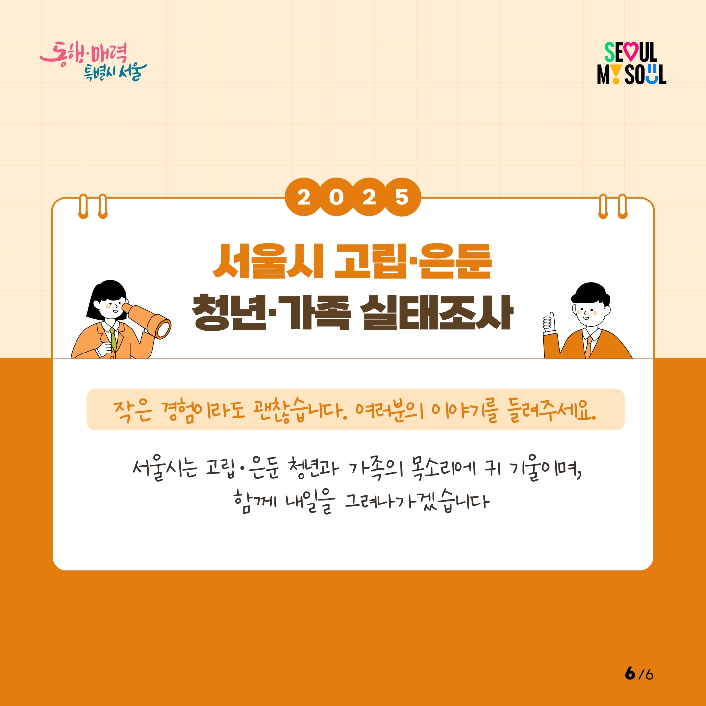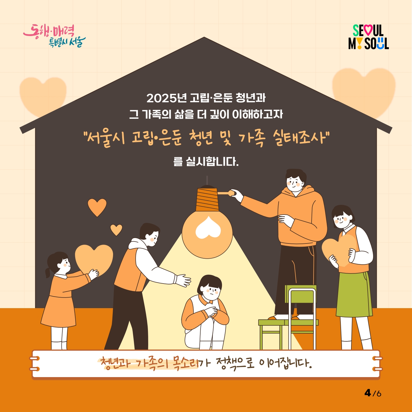 고립·은둔 청년과 가족의 삶을 더 잘 이해하기 위해서울시에서 온라인 설문조사를 진행하고 있어요 🙌