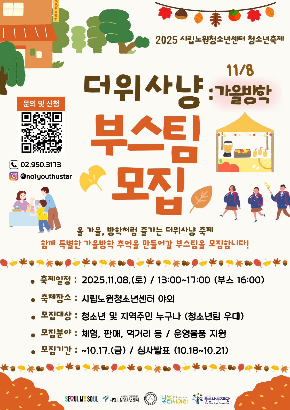 ์ฒดํ, ๋จน๊ฑฐ๋ฆฌ, ํ๋งค ๋ฑ ๋ค์ํ ์ข ๋ฅ์ ๋ถ์ค๋ค๋ก, ๊ฐ์๋ฐฉํ์ ํจ๊ป ๋ง๋ค์ด๋๊ฐ ๋ฉฐ, ํน๋ณํ ์ถ์ต์ ์์๊ฐ์ค ๋ถ์คํ์ ๋ชจ์งํ๋ ๋ง์ ๊ด์ฌ๊ณผ ํ๋ณด, ์ ์ ๋ถํ ๋๋ฆฝ๋๋ค. ๊ฐ์ฌํฉ๋๋ค!!